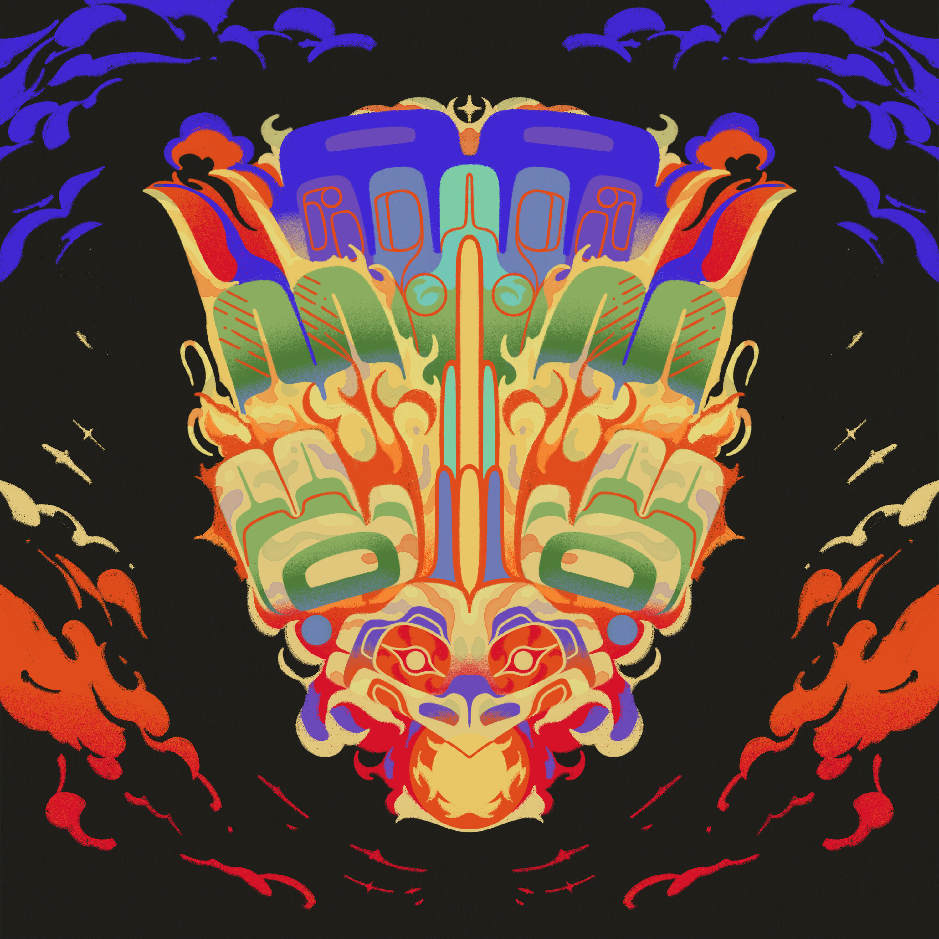 1, 2, 3. Ts'msyenu a ts'm G̱a̱wiłeeyu series, April 2023. — (Buy print 1, print 2, print 3) (Timelapse of 2 on Patreon)